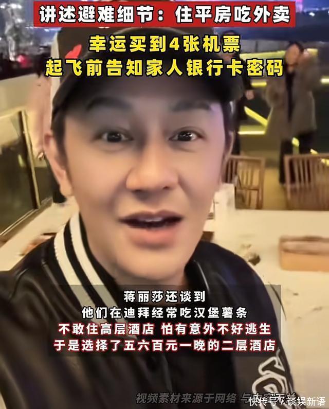 3月11日,陈浩民和蒋丽莎夫妻已经从迪拜平安回到香港好几天了,但这次迪拜之行却给俩人留下了永生难忘的深刻记忆。 陈浩民和蒋丽莎这次去迪拜并非旅游,而是去迪拜谈工作,但都出国了,就想着想着蒋丽莎的父母一起去,想带两位老人出国见见世面,尽尽孝心。 陈浩民他们定的酒店距离被导弹袭击的地方很近,直线距离也就十几米的样子,中间就隔了几栋房子,所以导弹落地的时候,陈浩民和蒋丽莎一家是有很明显的感觉的。 他们当天晚上就决定了要离开迪拜,但买票的时候,发现机票已经卖空了,他们费了很大的劲儿才抢到2张机票,这2张机票是陈浩民为岳父母买的,他们作为子女就想父母能平安。 但岳父母得知这个消息后,却坚定的拒绝了,老两口哭着让陈浩民和蒋丽莎先走,理由很简单,他们已经60多岁了,已经是半截身子入土的人了,遇到这种危险时刻,保全家里的青壮年才是最正确的选择。 而且陈浩民和蒋丽莎还有4个孩子要养,这些年夫妻俩为了养4头吞金兽,可以说工作就没停过,拍戏,直播带货都干,也不在乎网上的风评。 所以岳父母让陈浩民和蒋丽莎先走,4个孩子还在家里等着他们呢,他们不能出任何意外。 陈浩民听到岳父母的话后,当时就感动哭了,觉得父母真的是一心一意的为他们在考虑。 都说在生死危机前人是最自私的,可陈浩民一家只想让对方能活着,能好好的,所以才会互相谦让机票。 不过父母虽然让他们先回国,可陈浩民和蒋丽莎也不能真的把父母丢在这里自己先离开,一家人就换了一个平房住避免,躲在平房里的这段时间,蒋丽莎从来没有停止过抢票,她的手都快把手机戳出洞了,晚上也不睡觉继续抢,终于让她陆陆续续的抢到了4张回国的机票。 蒋丽莎说,当时她躺在平房的小床上,听见空中无人机和战斗机的纠缠的声音,内心十分恐慌,害怕有导弹突然就落到他们住的房子上了。 后面坐上飞机后,他们也觉得不安稳,害怕飞机起飞后会遇到袭击,所以蒋丽莎在飞机起飞前给孩子们发了他们家的银行卡密码,告诉孩子家里有多少财产,以防他们出了意外回不去,孩子对家里的情况一无所知会很麻烦。 不过好在他们平安的回家了,落地香港那一刻,他们才觉得真的安全算了,这趟迪拜之行也让他们深刻的意识到这个世界并不和平,是我们的国家在守护民众的和平。